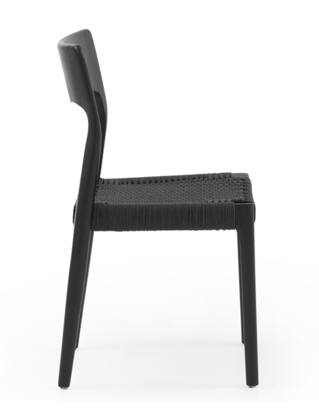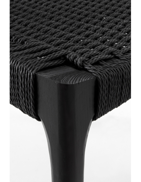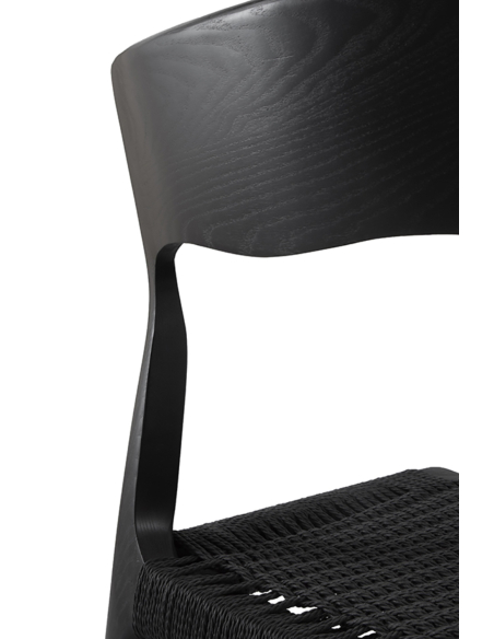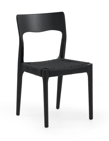 Set 4 sillas de comedor madera de fresno trenzado, estas sillas presentan un diseño limpio y actual, con una estructura sólida de madera de fresno macizo teñida en negro que contrasta maravillosamente con el asiento trenzado en cuerda también negra. Este detalle artesanal aporta textura y un punto focal interesante al diseño minimalista. La combinación de la madera de fresno negra y el asiento trenzado crea una pieza visualmente ligera pero robusta. Su diseño sin brazos las hace ideales para optimizar el espacio alrededor de la mesa, permitiendo acomodar a más comensales cómodamente. Son perfectas para el uso diario, ofreciendo un asiento firme y un estilo que perdura. Listas para colocar directamente en tu comedor, ya que no requieren montaje, estas sillas son la solución perfecta para quienes buscan diseño y comodidad sin complicaciones. Encajan a la perfección en ambientes modernos, industriales o minimalistas, aportando un toque sofisticado y funcional a tu hogar.