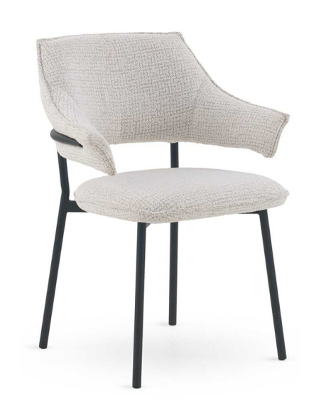 Silla de comedor Azabache blanco, diseñadas con brazos para brindar un confort superior y un estilo moderno. Los asientos y respaldos están tapizados en un suave tejido de chenilla 100% poliéster jaspeado, que combina comodidad y durabilidad para el uso diario. La estructura y las patas de metal tubular redondo en color negro proporcionan estabilidad y un elegante contraste con el tapizado, realzando su diseño contemporáneo. Perfectas para comedores, cocinas o espacios multifuncionales, estas sillas ofrecen comodidad, resistencia y un toque de estilo que transforma cualquier ambiente en un espacio acogedor y sofisticado.