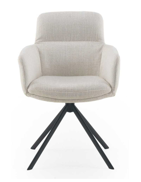 Silla de comedor Berilo blanco, diseñadas con brazos que brindan comodidad adicional y un aire moderno. Cada asiento y respaldo está tapizado en un elegante tejido tweed 100% poliéster, que combina suavidad, durabilidad y resistencia al uso diario, aportando textura y carácter al espacio. La estructura y patas de metal ovalado en color negro ofrecen estabilidad y un contraste estilizado con el tapizado, reforzando su diseño contemporáneo. Ideales para comedores, cocinas o rincones multifuncionales, estas sillas no solo garantizan confort y resistencia, sino que también agregan un toque de sofisticación y personalidad a cualquier ambiente del hogar.
