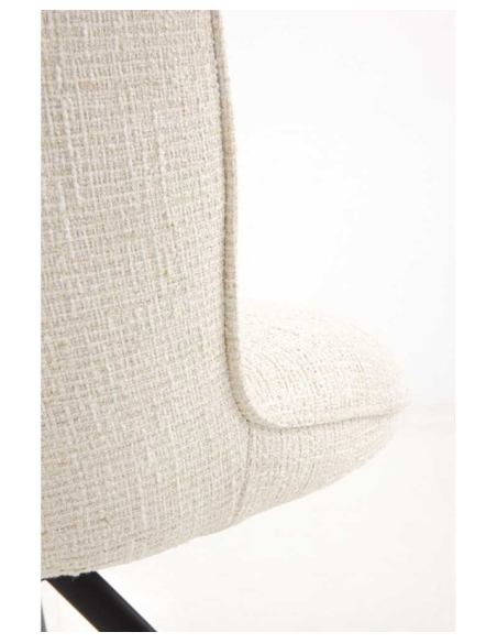 Silla de comedor Cuarzo blanco, cuenta con un delicado tapizado de tejido tweed 100% poliéster, suave al tacto y resistente para un uso diario prolongado. La estructura y patas de metal ovalado en negro proporcionan estabilidad y un contraste moderno que realza el diseño de las sillas. Perfectas para comedores, cocinas o espacios multifuncionales, estas sillas combinan estilo contemporáneo, confort y funcionalidad, aportando un aire luminoso y sofisticado a cualquier ambiente del hogar.
