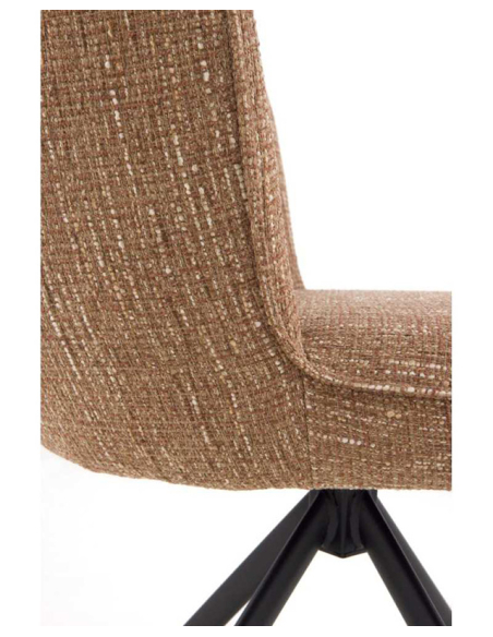 Silla de comedor Cuarzo terracota, está tapizada en tejido tweed 100% poliéster, suave y resistente al uso diario, aportando calidez y textura al ambiente. La estructura y patas de metal ovalado en color negro aseguran estabilidad y durabilidad, mientras que el contraste entre el tapizado terracota y el metal negro aporta un estilo moderno y sofisticado. Ideales para comedores, cocinas o espacios de trabajo, estas sillas brindan comodidad, funcionalidad y un toque decorativo distintivo a tu hogar.