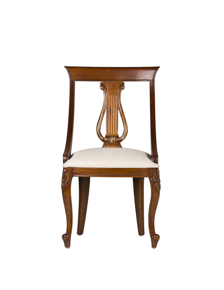 ¿Buscando sillas para completar tu mesa de comedor? El estilo de esta bonita silla de comedor Liberty Vintage tapizada seguro que te encantará. Colócalas alrededor de tu mesa de comedor estilo vintage creando conjunto. Su asiento acolchado entelado en color crudo apoya sobre cuatro patas, las dos delanteras con detalles tallados en la parte más alta y que rematan abajo en dos motivos de rollos con una forma más torneada, mientras que las dos traseras se vuelven más rectas y salientes. Su respaldo arranca propiamente del asiento en una forma curvada muy elegante, que se completa con los detalles tallados del centro del respaldo en forma de columna acanalada clásica.