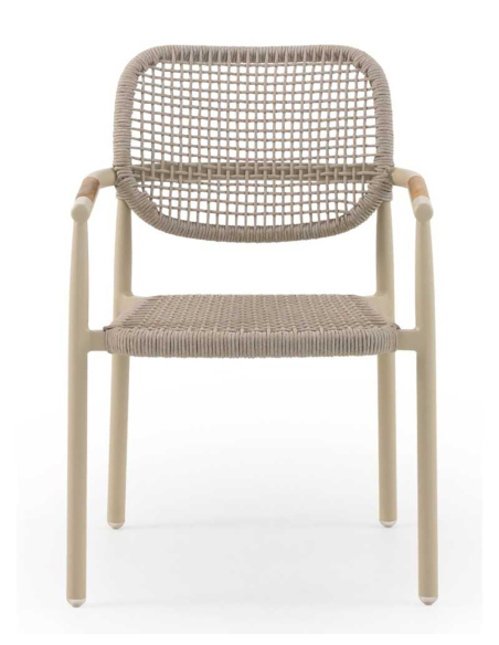 Mesa de comedor exterior Amura redonda aluminio cerámica travertino