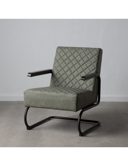 Sillón verde metal y símil piel con toque vintage que será, sin duda, una pieza clave en la decoración de tu hogar.
