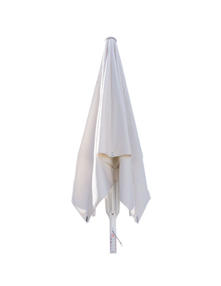 Parasol de aluminio Giant de 4 x 4 m, perfectamente adaptado a los agentes externos, una solución óptima para empresas del sector de la hostelería pensando en ofrecer un óptimo servicio exterior. Con mástil redondo estriado, está pintado en color blanco con pintura epoxy. Con montura y varillas de aluminio, éstas están además extra reforzadas, ofreciendo una óptima estabilidad y seguridad. Con sistema de apertura telescópica. Si estás pensando en ofrecer un sistema de terraza mejorado, la calidad de este parasol de aluminio te sorprenderá. Elige el tipo de tejido para tus parasoles según tus necesidades.