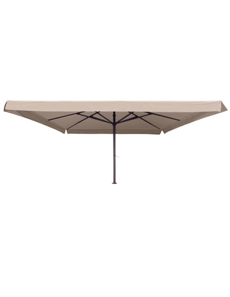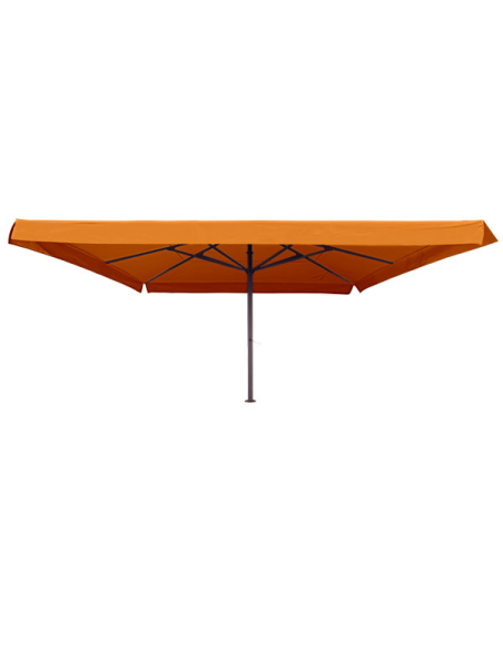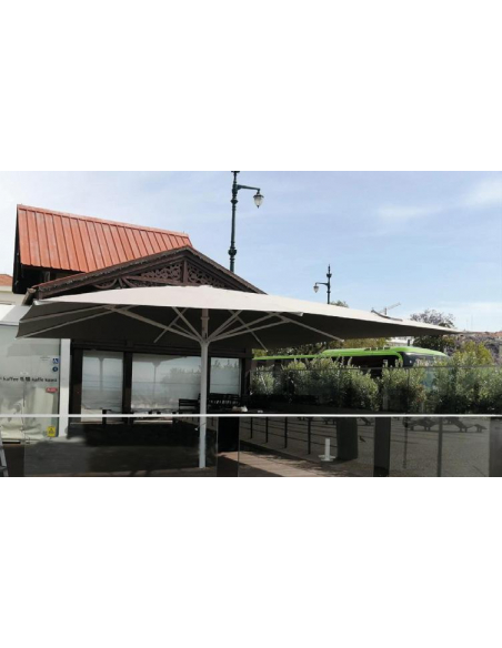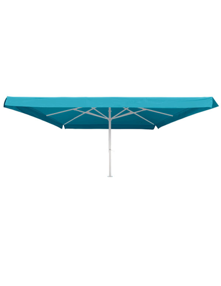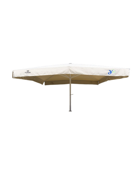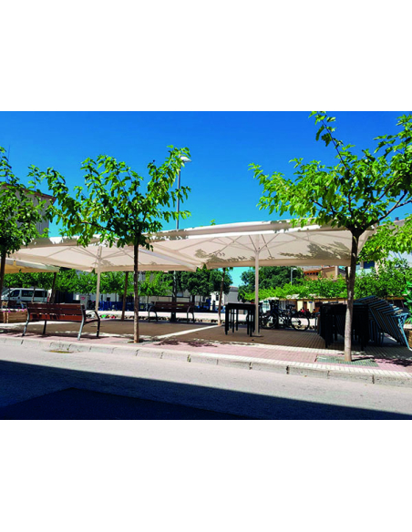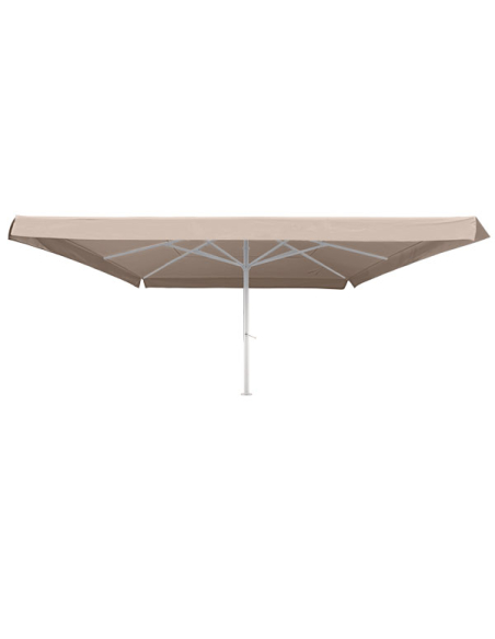 Parasol de aluminio Giant de 5 x 5 m, perfectamente adaptado a los agentes externos, una solución óptima para empresas del sector de la hostelería pensando en ofrecer un óptimo servicio exterior. Con mástil redondo estriado, está pintado en color blanco con pintura epoxy. Con montura y varillas de aluminio, éstas están además extra reforzadas, ofreciendo una óptima estabilidad y seguridad. Con sistema de apertura telescópica. Si estás pensando en ofrecer un sistema de terraza mejorado, la calidad de este parasol de aluminio te sorprenderá. Elige el tipo de tejido para tus parasoles según tus necesidades.