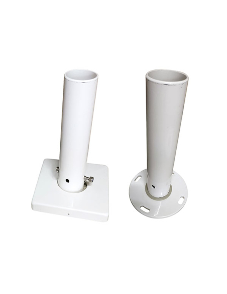 Materiales: Montura de aluminio y 8 varillas de aluminio de 20 x 35 mm. Mástil pintado en blanco con pintura epoxy.
