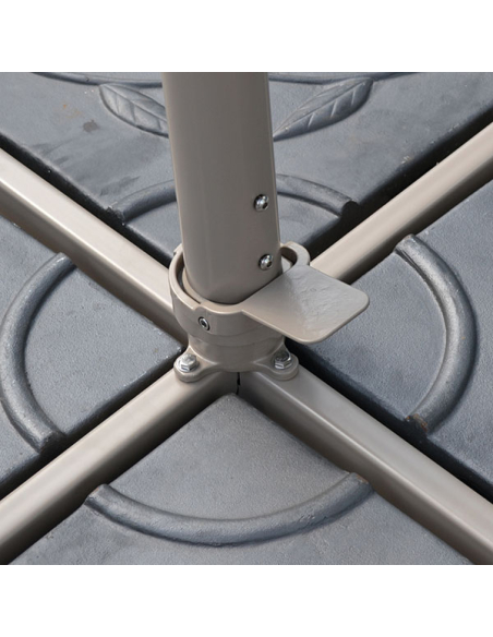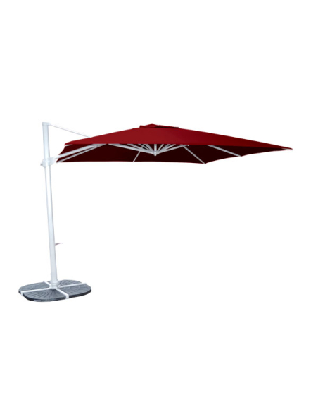 Parasol de aluminio con mástil lateral Plus, una solución de gran estilo para terrazas de hostelería. Si buscas un parasol de gran amplitud para tu servicio de terraza, debes considerar varios factores importantes, como la cantidad de espacio disponible, el mantenimiento y la imagen de marca que quieres presentar a tus clientes. Con este parasol de aluminio obtendrás un ambiente de diseño, perfecto para restaurantes y zonas chill-out. Fabricado en poliéster beige, este parasol incluye todo lo necesario para brindar un servicio único a tus clientes: manivela para abrir y cerrar y base de cruz con dispositivo de rotación 360 grados. Sugerimos losas de cemento para asegurar el equilibrio de tu nuevo parasol de aluminio. Gracias a su sistema de salida de vientos, ofrece una gran estabilidad frente al viento.