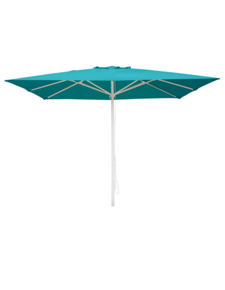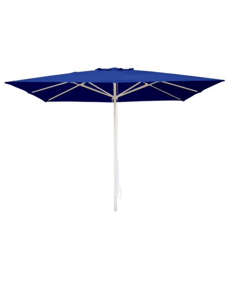 Parasol Zoco de aluminio de 2 x 3 m, con montura de aluminio y varillas de acero, con tela disponible en varios acabados y colores poliéster o acrílico. Si estás pensando en comprar parasoles para terraza de bar o restaurante, es muy importante invertir en un producto de alta durabilidad y con acabados resistentes y de fácil mantenimiento. Este parasol está fabricado con materiales resistentes al entorno y de fácil mantenimiento, además, gracias a su sistema de salida de vientos, te garantiza una gran estabilidad para un servicio de terraza óptimo. Apertura con sistema de polea y bloqueo de seguridad con pasador.