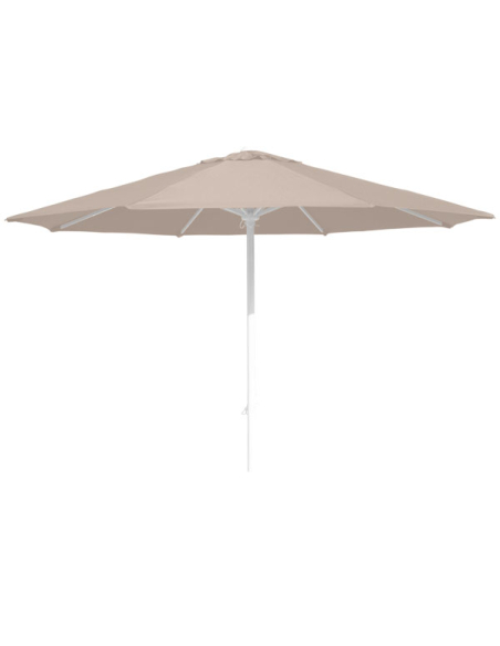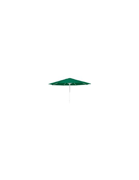 Parasol RUEDO de aluminio 3 m diámetro, mástil de Ø 48 mm, con montura de aluminio y 8 varillas de acero de 14 x 20 mm. Sistema de apertura por polea y bloqueo de seguridad con pasador. Con salida de vientos.