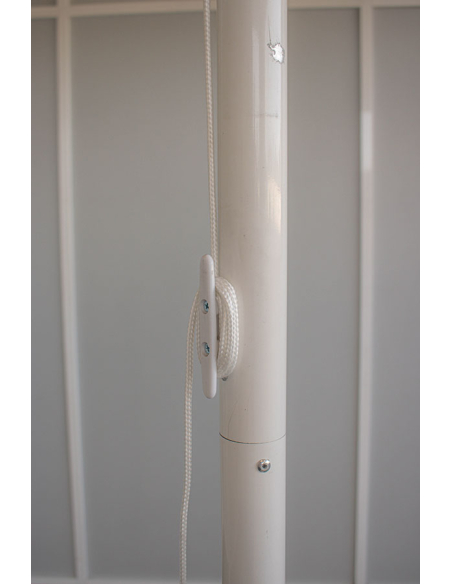 Materiales: Montura de aluminio y 8 varillas de acero de 14 x 20 mm. Mástil Ø 48 mm pintado en blanco con pintura epoxy.