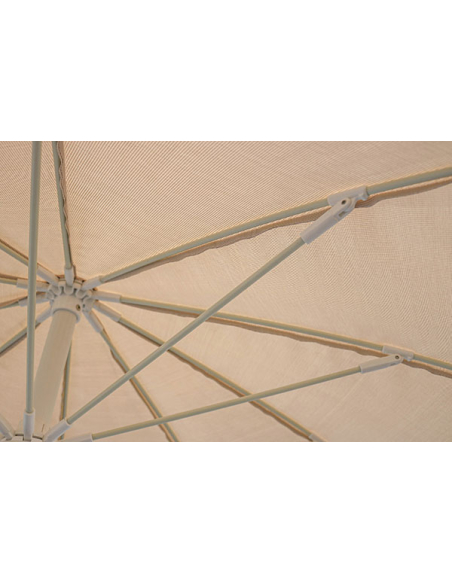 Parasol Aquatex Aluminio estriado de 2 m diámetro, fabricado en textilene beige, un material muy resistente y de fácil mantenimiento, mástil de Ø 35-40 mm, estructura de aluminio y 10 varillas de fibra de vidrio de Ø 8,00 mm.