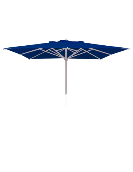 Parasol de aluminio Máster de 3 x 3 m, una solución para establecimientos hosteleros con servicio exterior que necesitan proteger a sus clientes del sol. Su mástil cuadrado, con cantos redondeados, está pintado en color blanco con pintura epoxy, se trata de una estructura gruesa y resistente. Sus varillas están extra reforzadas, lo que aporta una mayor estabilidad y seguridad. Con sistema de apertura telescópica. Si estás pensando en ofrecer un sistema de terraza mejorado, la calidad de este parasol de aluminio te sorprenderá. Elige el tipo de tejido para tus parasoles según tus necesidades.