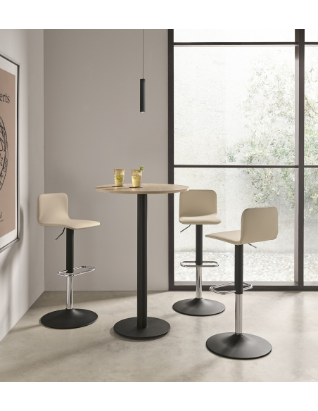 Taburete de Cocina Alto Gas Tom con armazón metálico y opción de elegir el acabado del asiento tapizado. Altura mínima 81 cm y máxima 102 cm. Base en color cromo brillo.