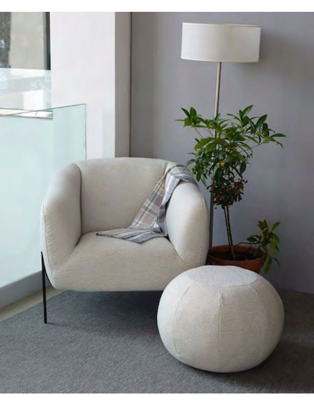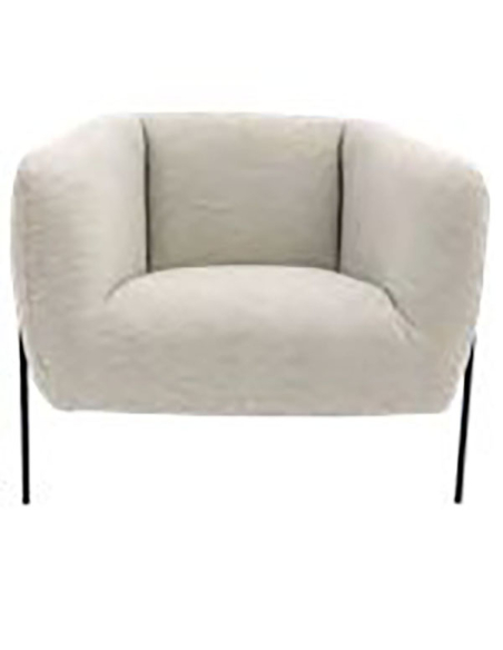 Butaca Claire de diseño sencillo y moderno, con las patas de metal en color negro mate y con un tapizado de algodón de color beige. Una forma sencilla y envolvente que te cautivará y conquistará tu hogar.