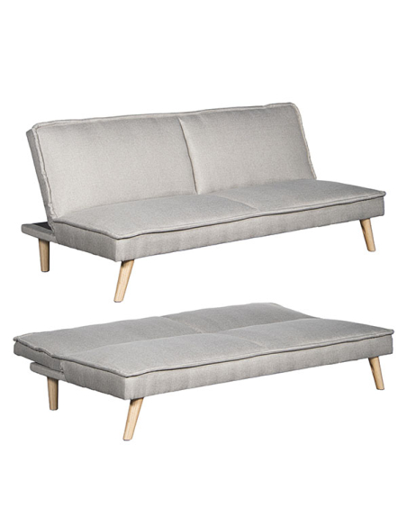 Sofá cama 3 plazas poliéster gris con patas madera sin brazos