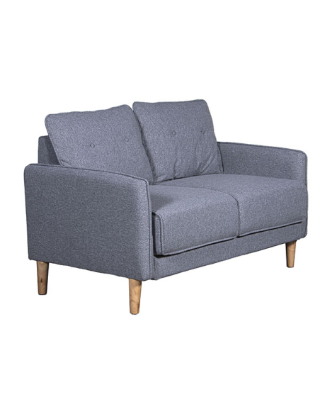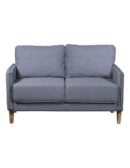 Sofá 2 plazas poliéster gris con patas madera de caucho