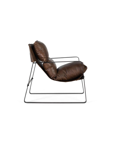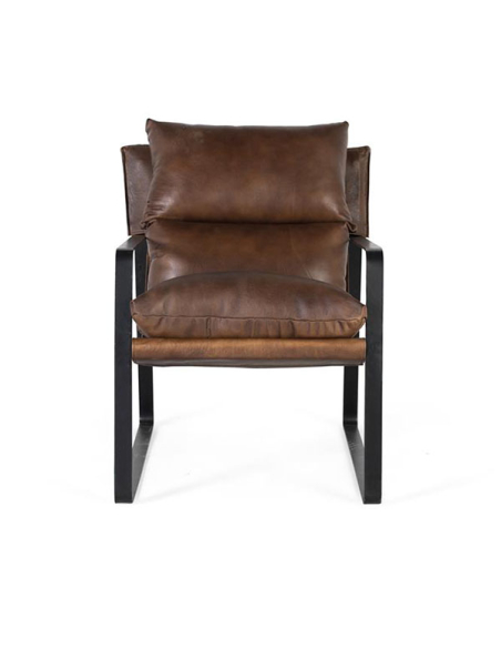 Sillón mullido reclinado cuero marrón, el almohadón mullido y la base están tapizados proporcionan un toque de calidez y sofisticación al sillón. El cuero no solo añade un aspecto lujoso, sino que también es duradero y fácil de limpiar, asegurando que tu sillón se mantenga hermoso durante mucho tiempo. La estructura de metal negra no solo añade un toque de elegancia industrial, sino que también proporciona una base estable y resistente para el sillón. Además, la inclinación de la estructura añade un nivel adicional de comodidad, permitiéndote relajarte y disfrutar de momentos de descanso y tranquilidad. Ya sea que lo coloques en el salón como una pieza de acento o en el estudio como un lugar acogedor para leer o descansar, nuestro Sillón con Almohadón Mullido será el lugar perfecto para relajarte al final del día.