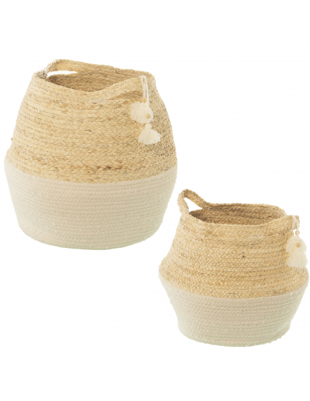 Bonito set 2 cestos hojas de maíz/algodón con mil usos diferentes que dará un toque original a cualquier estancia de tu hogar.