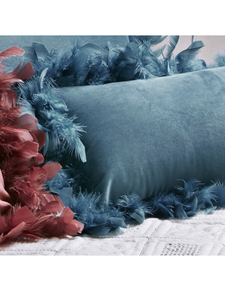 Cojín plumas azul rectangular