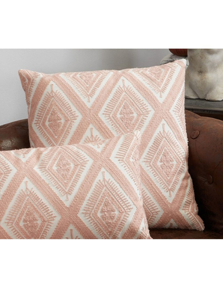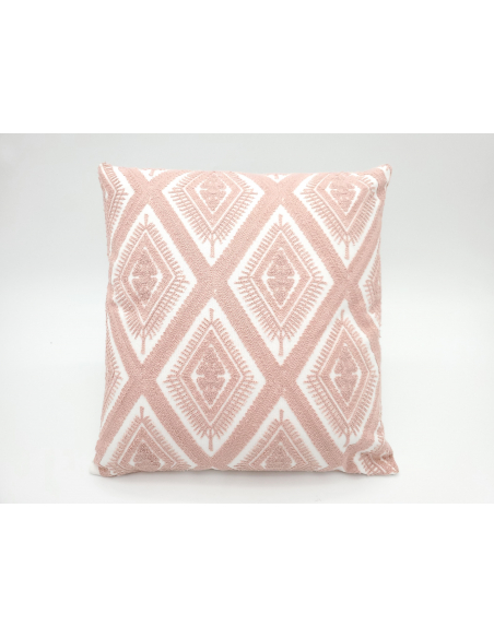 Cojín bordado rombos rosa pálido