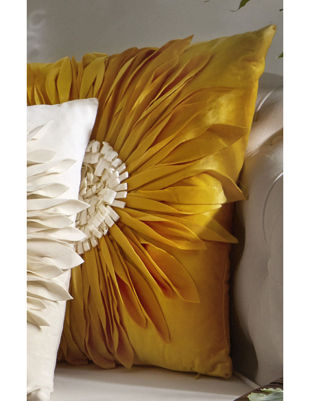 Set de 2 cojines decorativos con margarita en color amarillo.