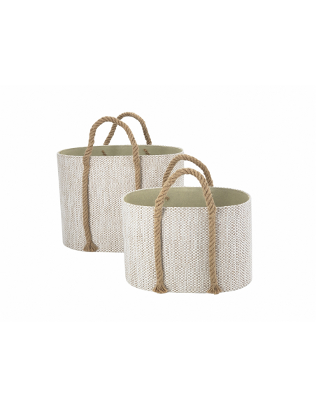 Set 2 cestos natural con asas cuerda