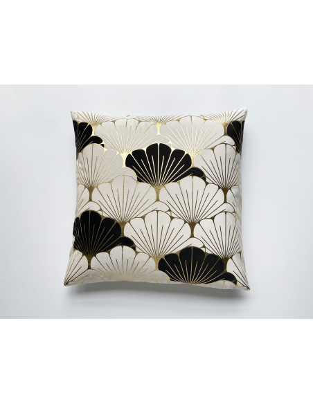 Set 2 cojines abstractos dec hojas blanco y oro con relleno.