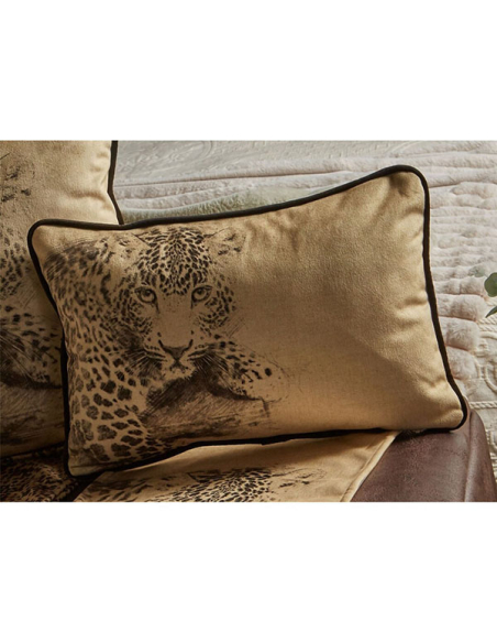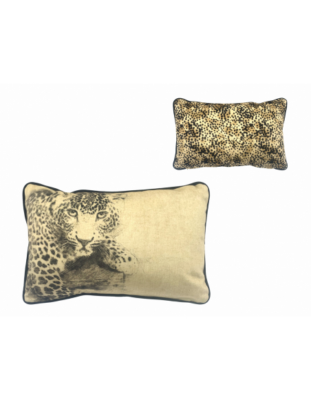 Set 2 cojines terciopelo guepardo beige y bordón doble cara rectangular