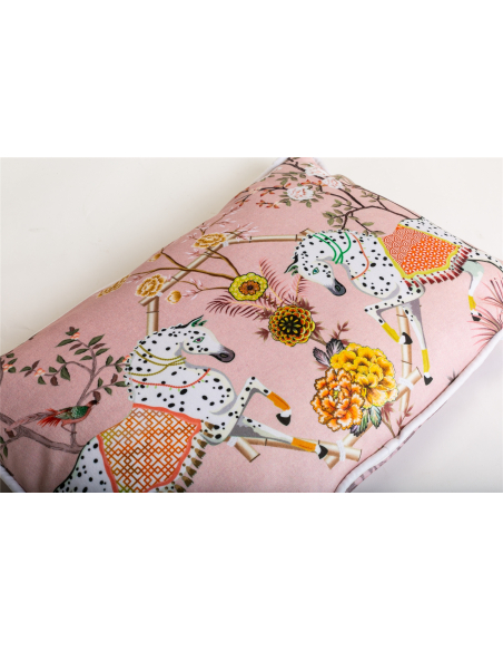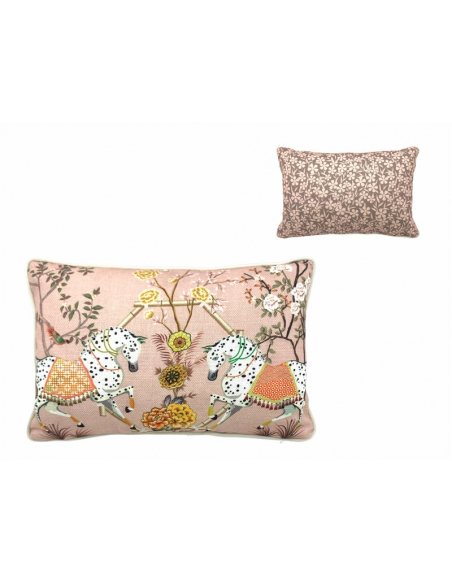 Set 2 cojines terciopelo caballos rosa y bordón doble cara rectangular