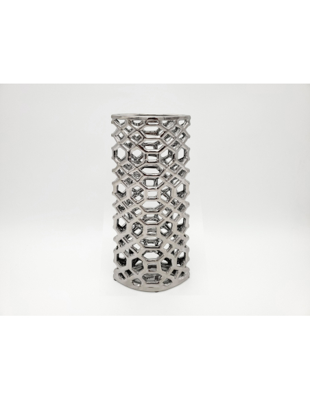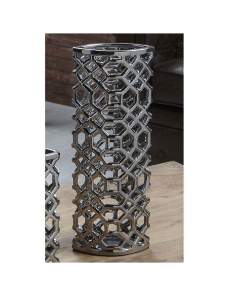 Jarrón cerámica calado plateado para decorar cualquier rincón o superficie de tu hogar.