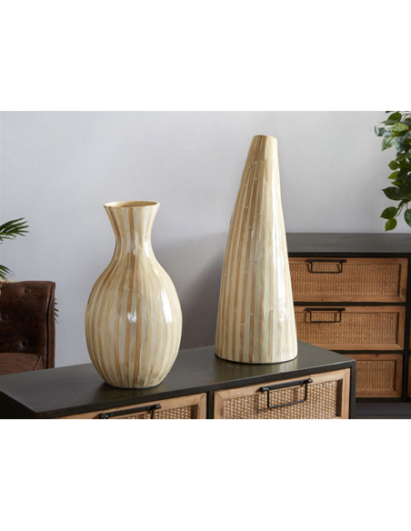 Jarrón bambú lacado blanco grande para decorar cualquier rincón o superficie de tu hogar.