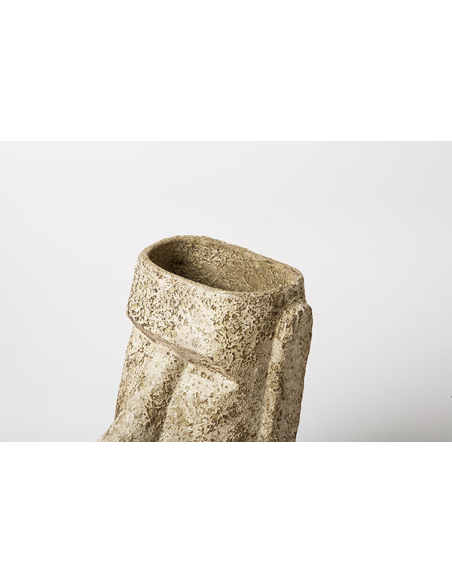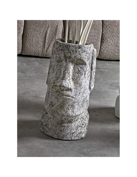 Vasija Moai beige. Una pieza decorativa que sirve como vasija o paragüero. Imitando el diseño de las cabezas de la Isla de Pascua, la vasija Moai tiene una textura rústica y de efecto envejecido.