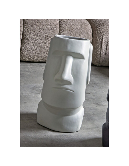 Jarrón Moai beige. Inspirado en la figura del Moai de la Isla de Pascua, este jarrón es una pieza de decoración perfecta para un espacio moderno. Con su color beige y exterior lacado, suma luminosidad y estilo.