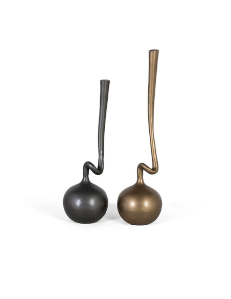 Set de 2 jarrones redondos con pico curvo alto, la línea vertical que atraviesa el centro del jarrón agrega interés visual y textura, creando un punto focal único en cualquier habitación. Fabricados con metal de alta calidad, estos jarrones son duraderos y resistentes, lo que garantiza su belleza y funcionalidad a lo largo del tiempo. Su acabado en tono neutro complementará una amplia variedad de estilos de decoración, desde moderno hasta industrial y más allá. Coloca estos jarrones en tu sala de estar, comedor, dormitorio o cualquier otro espacio que desees embellecer. Úsalos solos como piezas decorativas llamativas o agrúpalos con otros elementos de tu decoración para crear una exhibición visualmente impactante.