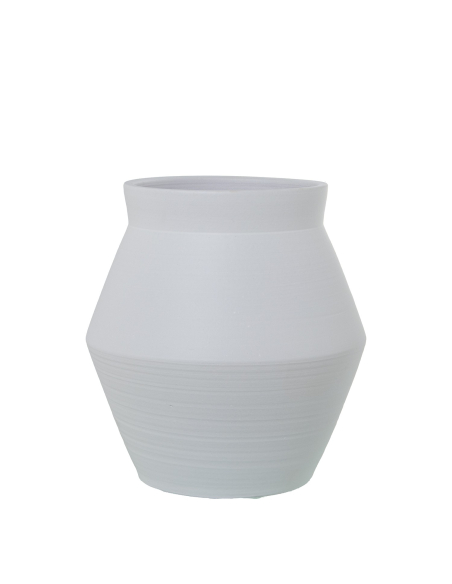 Jarrón cerámica texturada 38 cm blanco, su diseño elegante presenta un efecto cemento que añade un aspecto industrial chic a cualquier espacio. Con una abertura redonda ideal para arreglos florales, este jarrón está decorado con cuentas de madera redondas que realzan su belleza y estilo. Perfecto como pieza central en mesas o estanterías, este jarrón combina funcionalidad y belleza en cada detalle.