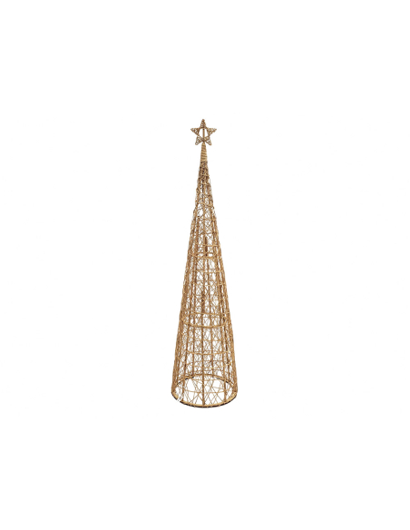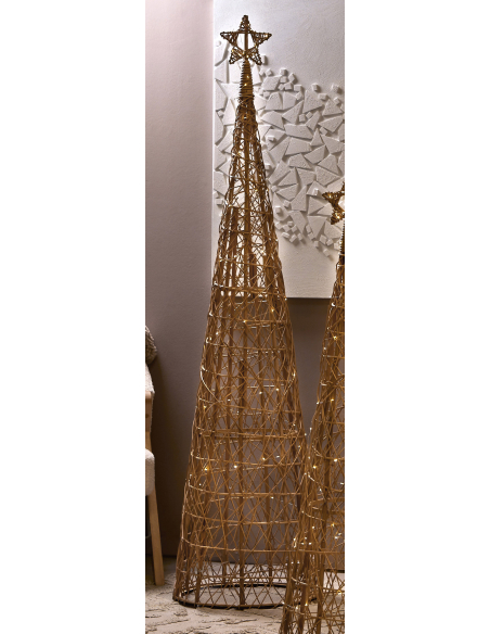 Árbol de navidad cónico natural led pilas 180 cm, destaca por su estructura de varillas y fibras naturales entrelazadas, aportando un toque rústico y acogedor a tu decoración. Este árbol, coronado con una elegante estrella en la punta, se ilumina con luces LED que crean un ambiente cálido y festivo en cualquier rincón de tu hogar. Perfecto para salones, entradas o incluso terrazas, su diseño versátil y encantador lo convierte en el centro de atención de tus celebraciones.