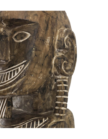 Tótem primitivo tallado, esta pieza única fusiona arte y cultura, destacando por su diseño intrincado y simbolismo. El cuerpo indígena, meticulosamente calado en la madera, revela detalles fascinantes que dan vida a la figura. Su base redonda de madera ofrece estabilidad, mientras que los detalles en blanco desgastado añaden un toque vintage y rústico, realzando su aspecto natural. Ideal para salones, oficinas o espacios de estilo étnico o bohemio, esta escultura es perfecta para quienes buscan una pieza decorativa con profundidad cultural y estética artesanal.
