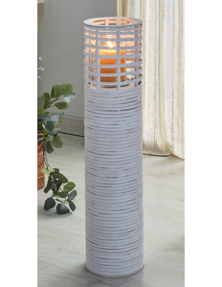 Pie mimbre blanco 80 cm, una pieza que destaca por su estilo rústico y artesanal, este porta velas o fanal de mimbre blanco es perfecto para crear un ambiente cálido y acogedor en cualquier espacio. Su diseño cilíndrico y alargado, con un entramado abierto, permite que la luz se filtre de manera suave y difusa, creando un efecto mágico y relajante. El mimbre, un material natural y renovable, aporta un toque de calidez y autenticidad, mientras que el color blanco añade luminosidad y frescura. Este porta velas es ideal para colocar en el suelo, junto a un sofá, una butaca o una chimenea, o incluso en exteriores, como terrazas o jardines, para disfrutar de una velada romántica o una reunión con amigos.