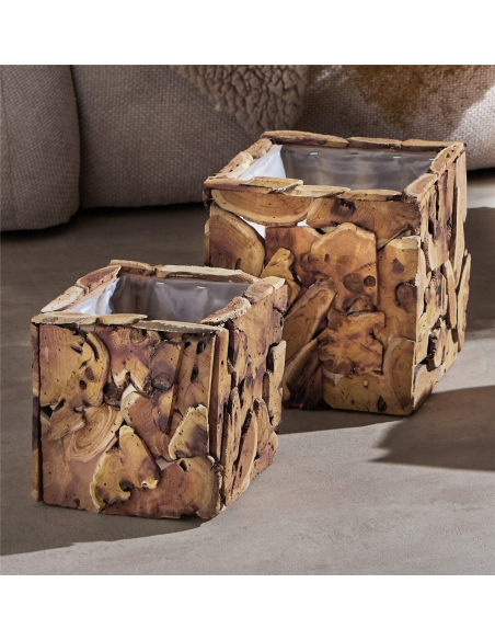 Set 2 centros cuadrado madera 25 cm, un conjunto de dos centros de mesa cuadrados que destacan por su diseño rústico y natural. Elaborados con madera de álamo, estos centros presentan un acabado que realza la belleza de la veta y la textura de la madera. Su forma cuadrada y su tamaño versátil los hacen perfectos para una variedad de usos: como base para velas o arreglos florales, como bandejas para servir aperitivos, o simplemente como elementos decorativos que añaden un toque de calidez a cualquier espacio. El set de dos tamaños permite crear composiciones interesantes y dinámicas. La madera de álamo, con su tono claro y su aspecto natural, aporta una sensación de frescura y autenticidad a tu hogar.