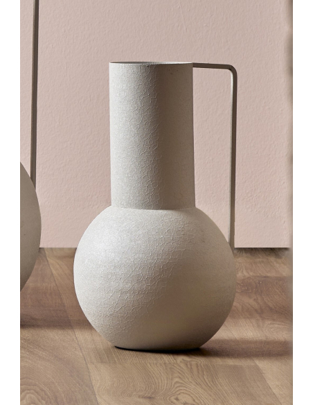 Jarrón decorativo metal blanco asa 36 cm