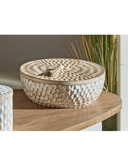 Caja grabado lobulado blanco tapa.