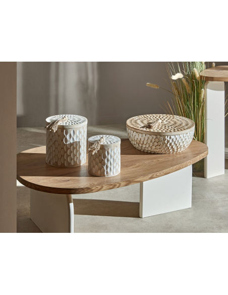 Caja grabado lobulado blanco tapa