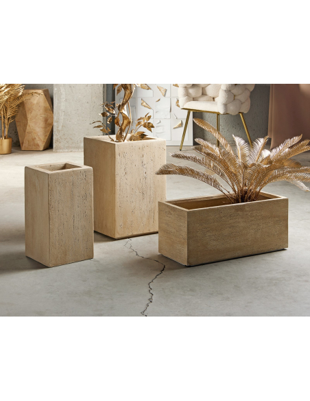 Macetero imitación mármol travertino 43 cm, con su forma rectangular y alta, presenta un acabado que imita a la perfección la textura y el veteado del mármol travertino, añadiendo un toque de sofisticación y lujo a cualquier espacio. A diferencia del mármol real, este macetero es mucho más ligero y fácil de mover, lo que te permite cambiar la ubicación de tus plantas según tus necesidades y preferencias. Su diseño versátil se adapta tanto a interiores como a exteriores, permitiéndole exhibir tus plantas favoritas con estilo.