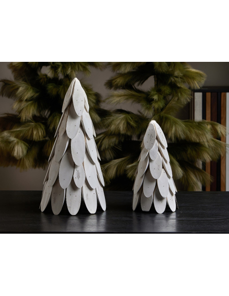 Abeto Navidad Lascas madera 43 cm, un detalle decorativo elaborado en madera de paulownia que transmite naturalidad y calidez. Su diseño con lascas superpuestas aporta textura y originalidad, convirtiéndolo en un complemento ideal para estanterías, mesas auxiliares o consolas. Compacto y versátil, es perfecto para añadir un aire navideño elegante en espacios pequeños. Una pieza que destaca por su sencillez y estilo natural.