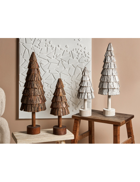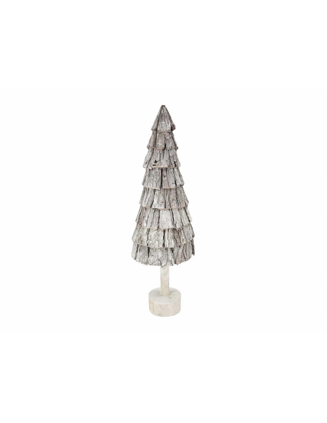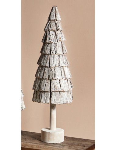 Abeto Navidad Lascas corteza decapado 63 cm, con acabado en corteza decapada que aporta un look nórdico y elegante. Su pie de madera le da estabilidad y un aspecto artesanal que encaja con diferentes estilos decorativos. El tono blanco envejecido resalta su diseño, aportando luminosidad y frescura a la decoración navideña. Una pieza decorativa que aporta calidez y sofisticación en cualquier espacio.
