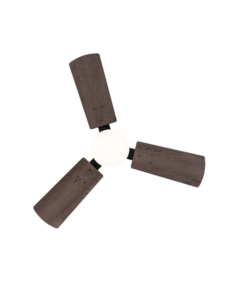 Ventilador DC Portico Negro 3 aspas Negro y Gris. Ventilador DC PORTICO realizado en metal, MDF y policarbonato, en color negro con tres aspas reversibles de color gris. Tiene seis velocidades ajustables. Tecnología LED incorporada con una potencia de 20W, con 3 temperaturas de luz (3000-4000-6500K) y 2350 lúmenes. Su medida es de 35/45X91,4X91,4 centímetros, viene con dos medias de tija para colocar a distintas alturas. Control de aire verano e invierno. Mando a distancia incluido con memoria de color incorporada y temporizador 1/2/4 H. Modelo disponible en blanco-blanco/haya y en negro-negro/gris.