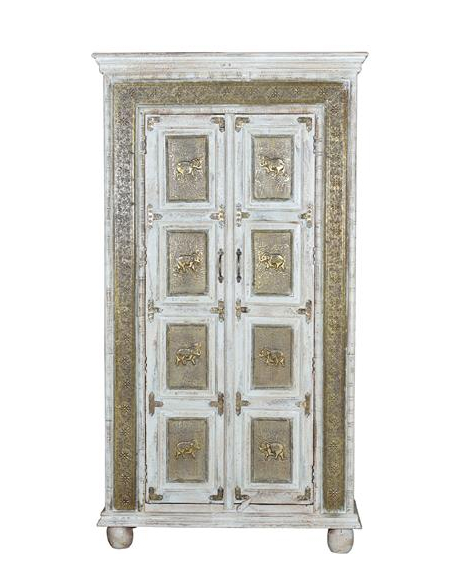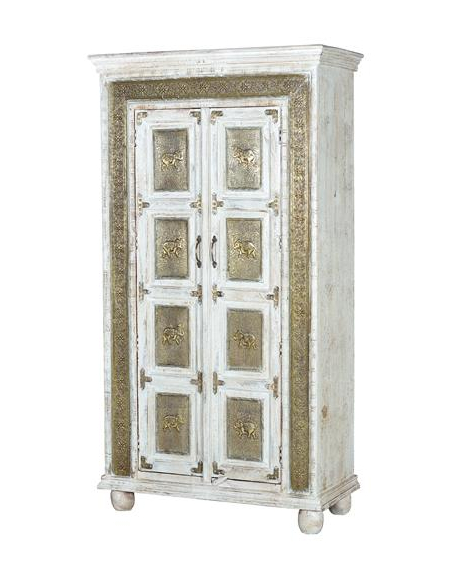Espectacular vitrina madera de mango dorada, un mueble fabricado en madera madera de mango con cuidados acabados, muy práctica que te servirá para organizar cristalería aunque también sirve para guardar otro tipo de objetos. Las puertas decorativas contiene bellos elefantes de la India, exhibe tu colección en tu salón o comedor. Transporta a tus invitados a lugares mágicos. Elevado con cuatro patas esféricas, ideal para ahorrarte tiempo de limpieza y organización. ¡Haz que tu hogar brille con accesorios maravillosos y de gran utilidad!