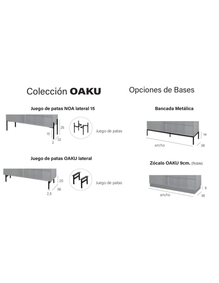 Zócalo: ↔ 95 cm ↗ 41 cm ↕ 84 cm / acabado a elegir entre las cartas de acabados